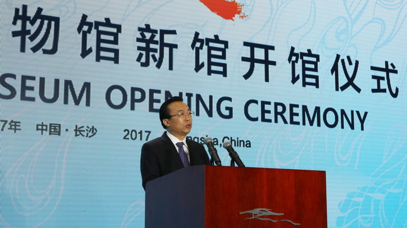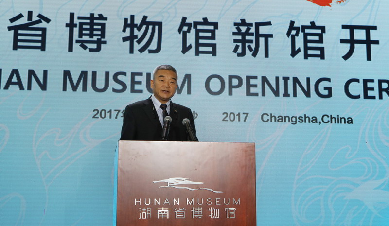 国家文物局副局长刘曙光代表国家文物局对湖南省博物馆新馆的建成开放表示祝贺。刘曙光说,湖南省博物馆事业发展基础非常好,从建馆开始就受到国家和省、市的关心和支持,近年来更是在文物保护、陈列展览、科学研究、创意产业等领域锐意进取,各项事业不断迈向新台阶,是中国博物馆界的一面旗帜,展示了湖南文博人的精彩和拼搏精神。一个博物馆是一座城市的灵魂。随着新馆的开放,希望湖南省博物馆面临新形势,继续担当重任,践行一个中央地方共建国家级重点博物馆和区域博物馆的责任和使命,一是要保持办馆特色,在洋溢着湖湘味道的同时,也要有世界博物馆的包容博大;二是要坚持发展定位,要有敢为人先的气魄和精神,继续带动中小博物馆的发展;三是要打造核心竞争力,既要有专业严谨的态度和精品展览,又要有深入浅出的与市民互动的活动。相信湖南省博物馆一定能在湖南省委、省政府和省文化厅、省文物局的支持和带领下,推动湖南文博事业发展进入新时代。